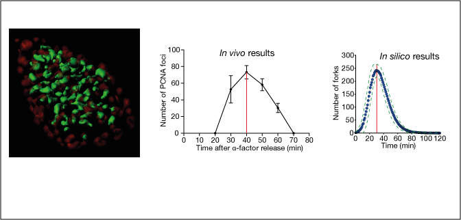 Dynamics of DNA replication in yeast.